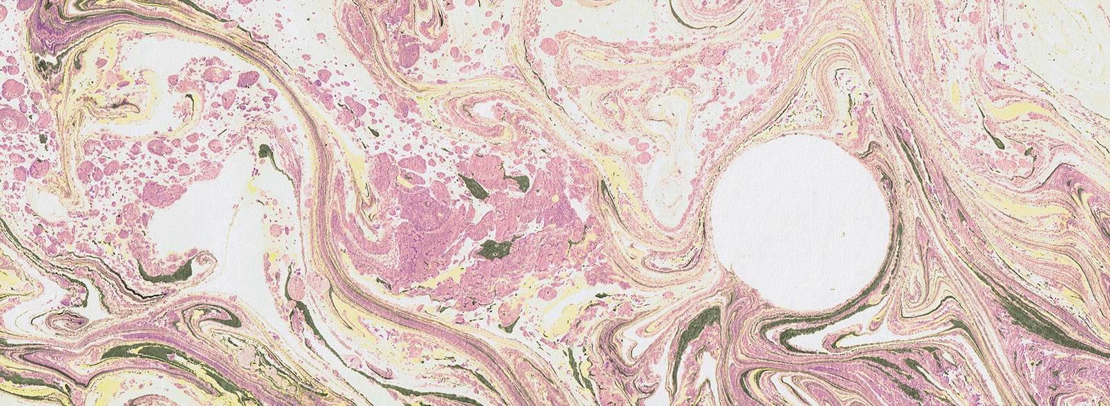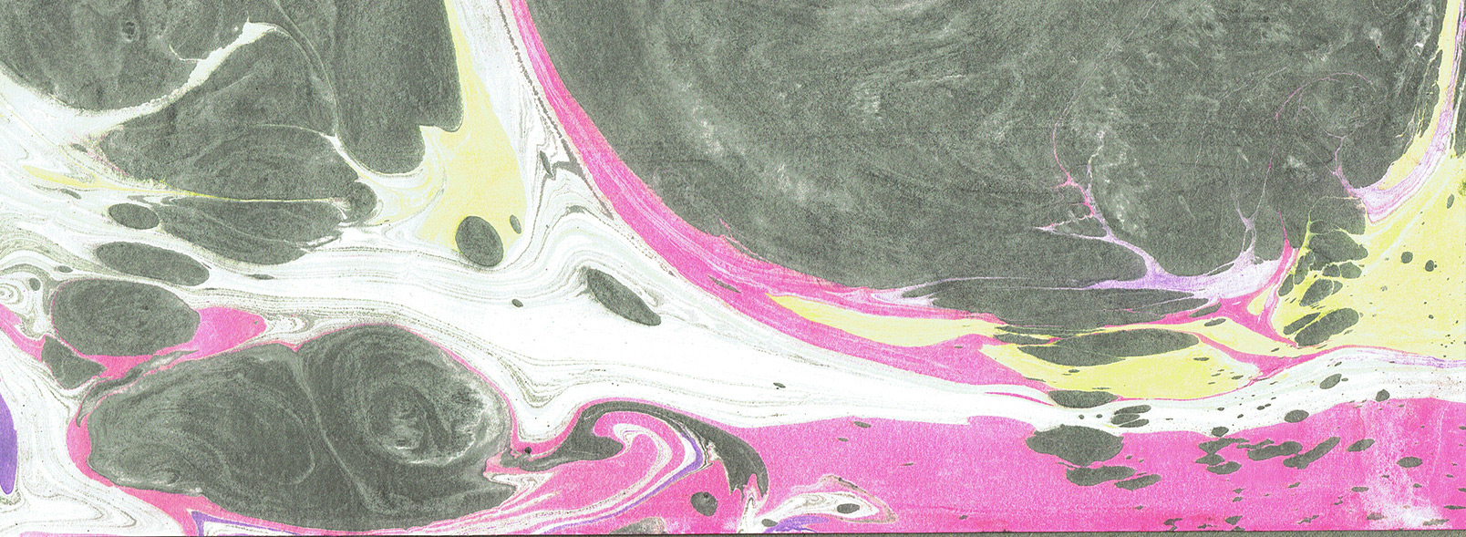 Encadernação manual e papel marmorizado são a essência dos meus projetos pessoais, nos quais junto as duas técnicas na criação de cadernos feitos à mão decorados com padrões únicos de papéis originais. Estes papéis são igualmente produzidos no meu atelier, sob a clássica arte de decoração de papel — a marmorização de papel —, onde aplico soluções e métodos de desenho descobertos sob uma investigação prática realizada por mim e uma equipa do campo artístico, no espaço oficinal da Faculdade de Belas Artes da Universidade do Porto.