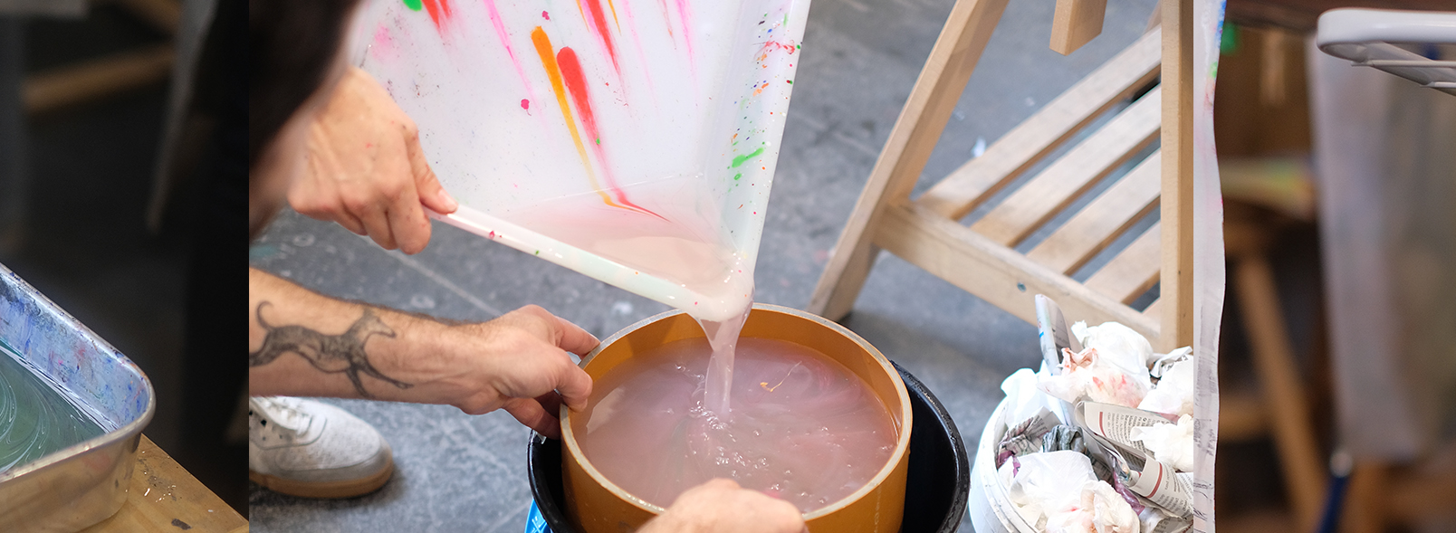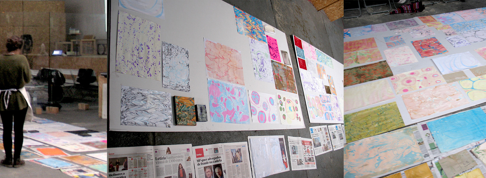 No dia 29 de Janeiro de 2017, organizei um workshop de papel marmoreado no espaço da Opo'Lab, com intuito de juntar várias pessoas próximas para marmorizarem papéis e outros materiais todas juntas, de forma a criar um espaço de troca de ideias e de experiências. Neste participaram 22 pessoas e então foi necessário produzir 8 banhos e variadas tintas. Os resultados foram variados onde a liberdade para as experiências trouxe resultados surpreendentes.